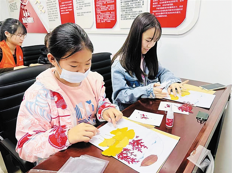 保定晚报讯(记者李卡 通讯员刘迪)11月17日,莲池区清山公爵城社区充分发挥党建引领作用,联合河北金融学院经济贸易学院大学生志愿者策划开展“小甜橙周末公益课堂”活动。在这场温馨愉快的社区活动中,社区青少年与古诗《山行》相遇,与落叶手工相拥。