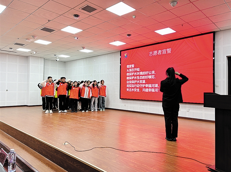 活动中,护河支队铮铮誓言铿锵有力,拳拳初心熠熠生辉。据悉,该支队的成立,标志着学院在环保教育领域迈出了坚实的一步,也预示着学生们将肩负起守护河流、宣传环保的重任,不仅为学生们提供了一个实践环保理念、锻炼能力的平台,也为我市环保事业的发展注入了新的活力。青年志愿者们将继续践行绿色发展理念,争当节水惜水、爱河护河的先行者、引领者、创新者、推动者,用实际行动影响带动更多的学生、群众投身到水生态保护事业中来,凝聚青春之力,共同守护幸福河湖。