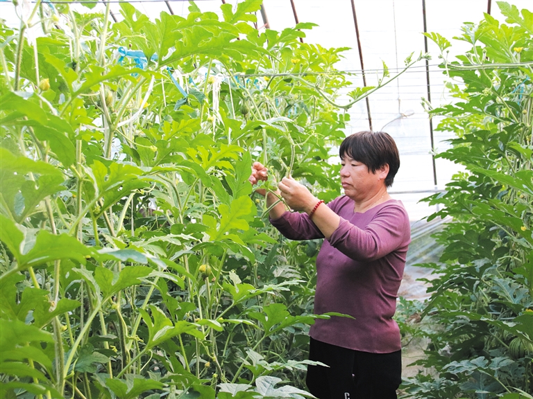 “我们合作社种了20个小吊瓜大棚,品种是适应性强的‘2k小吊瓜’和‘麒麟小吊’,平均亩产6000斤,主要销往京津及周边地区。”代梓彬高兴地介绍道,从移栽瓜苗、吊瓜藤、扳侧枝到收瓜,合作社给附近村民提供30余个务工岗位,有效解决本地部分群众的就业问题。