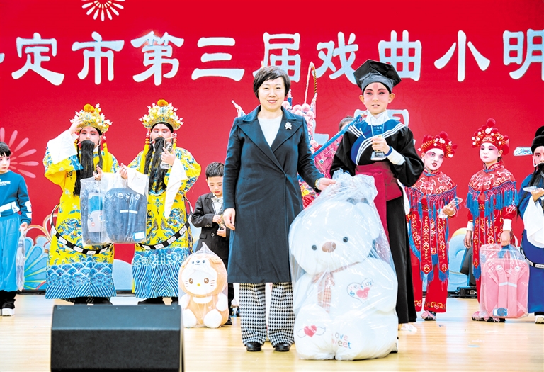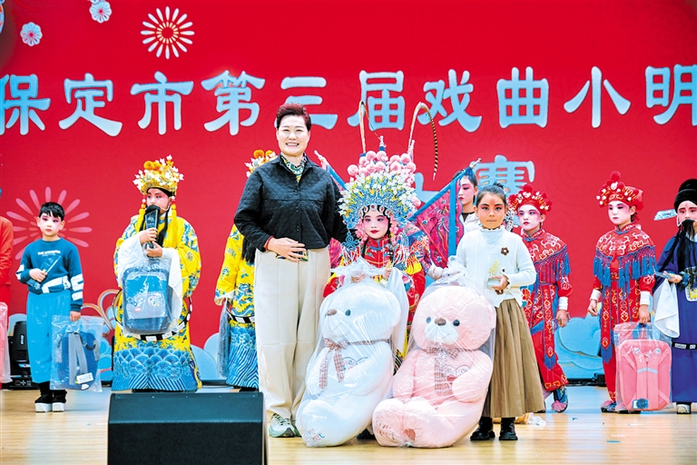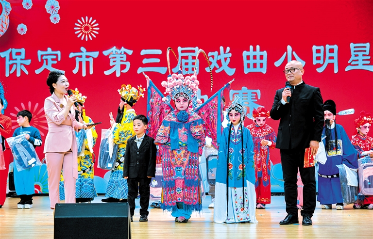 优雅俏皮的小花旦、嗓音雄浑宽厚的老生,韵味十足的“红衣仙子”,有台风又镇定自若的“八王爷”,动作如行云流水般的戏曲武术表演……11月24日下午,莲池区第一实验小学童心会堂内曲声悠扬,小选手们在舞台上激烈角逐,展示才艺,台下喝彩声不断,保定市第三届戏曲小明星大赛决赛在这里举行。保定老调、京剧、评剧、河北梆子、新颖调等剧种好戏连台,花旦、青衣、武生等艺术形象粉墨登场,戏曲小明星们身着华美戏服、头戴精美的发饰,表演精湛动人,动作一招一式尽显功底,赢得观众和评委们的一致点赞。
