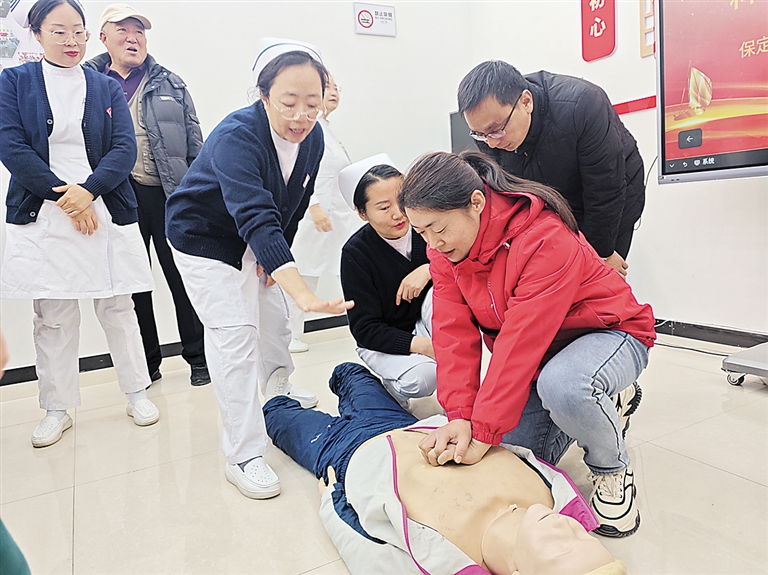 活动中,保定市第一中心医院的专家在进行健康讲解时,强调了心脏健康与日常行为方式之间的密切联系,提醒公众通过健康的生活方式来维护和促进心脏健康。科普内容分为“如何通过健康生活方式预防心梗的发生”“心脏支架相关知识”“现场教学心肺复苏技能”三个环节。在听完心肺复苏的演示和讲解后,社区网格员和志愿者踊跃上前动手操作,轮流实际演练,认真学习心肺复苏的规定动作。不少社区居民也积极参与其中,学习到很多健康知识。居民崔大叔说:“这次学习真是受益匪浅,前一段时间在公园散步时,就遇见一位老人突然晕倒,想救却又不知道怎么救,这下学习了,下次再遇到类似紧急情况就可以伸出援手了。”