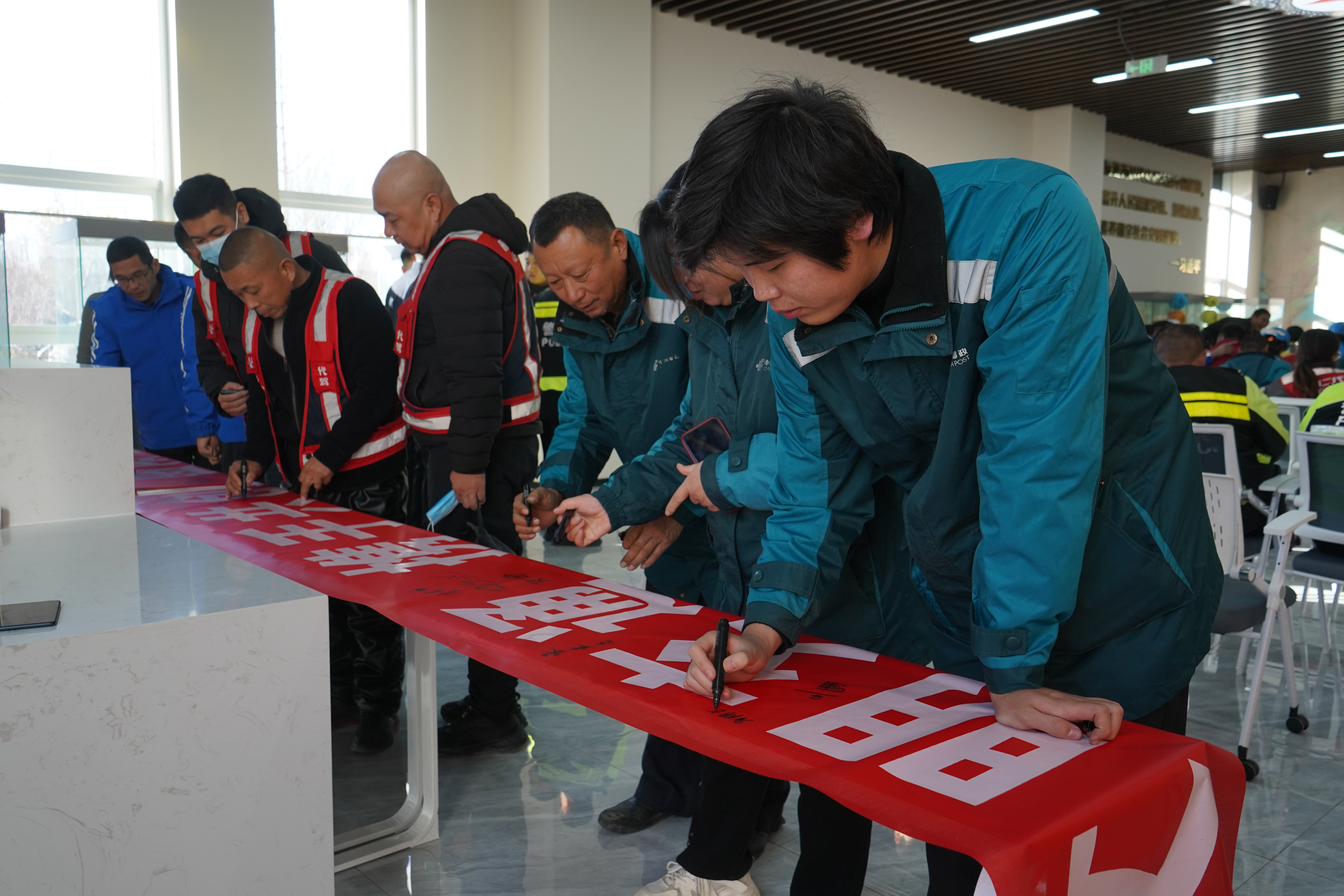 曲阳小哥们在条幅上签名,倡导文明出行,摒弃交通陋习。 高问 摄