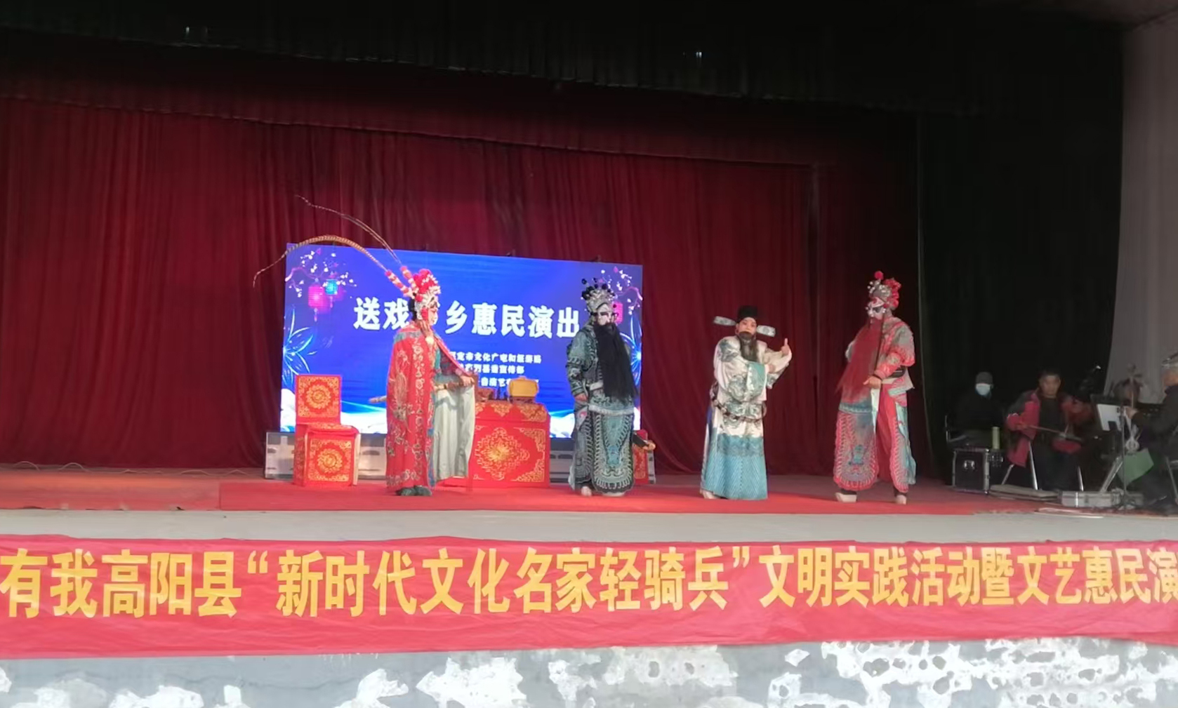 本次活动由高阳县委宣传部、保定市艺术学校联合开展。当天,保定市艺术学校老师们为村民奉上河北梆子《陈三两》《辕门斩子》等戏曲表演,让广大戏迷大饱眼福、耳福。“戏曲惠民演出自12月4日开始,已在我们县6个村先后开展,让村民在家门口欣赏精彩的戏曲表演,弘扬戏曲文化,丰富群众文化生活。”高阳县文联主席韩增荣说。