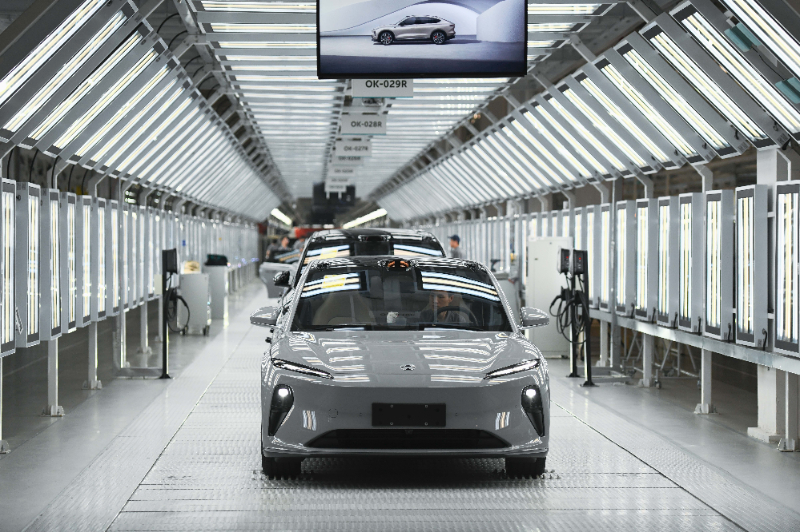 这是安徽省合肥市新桥智能电动汽车产业园蔚来第二工厂内的新能源汽车生产线(2024年5月9日摄)