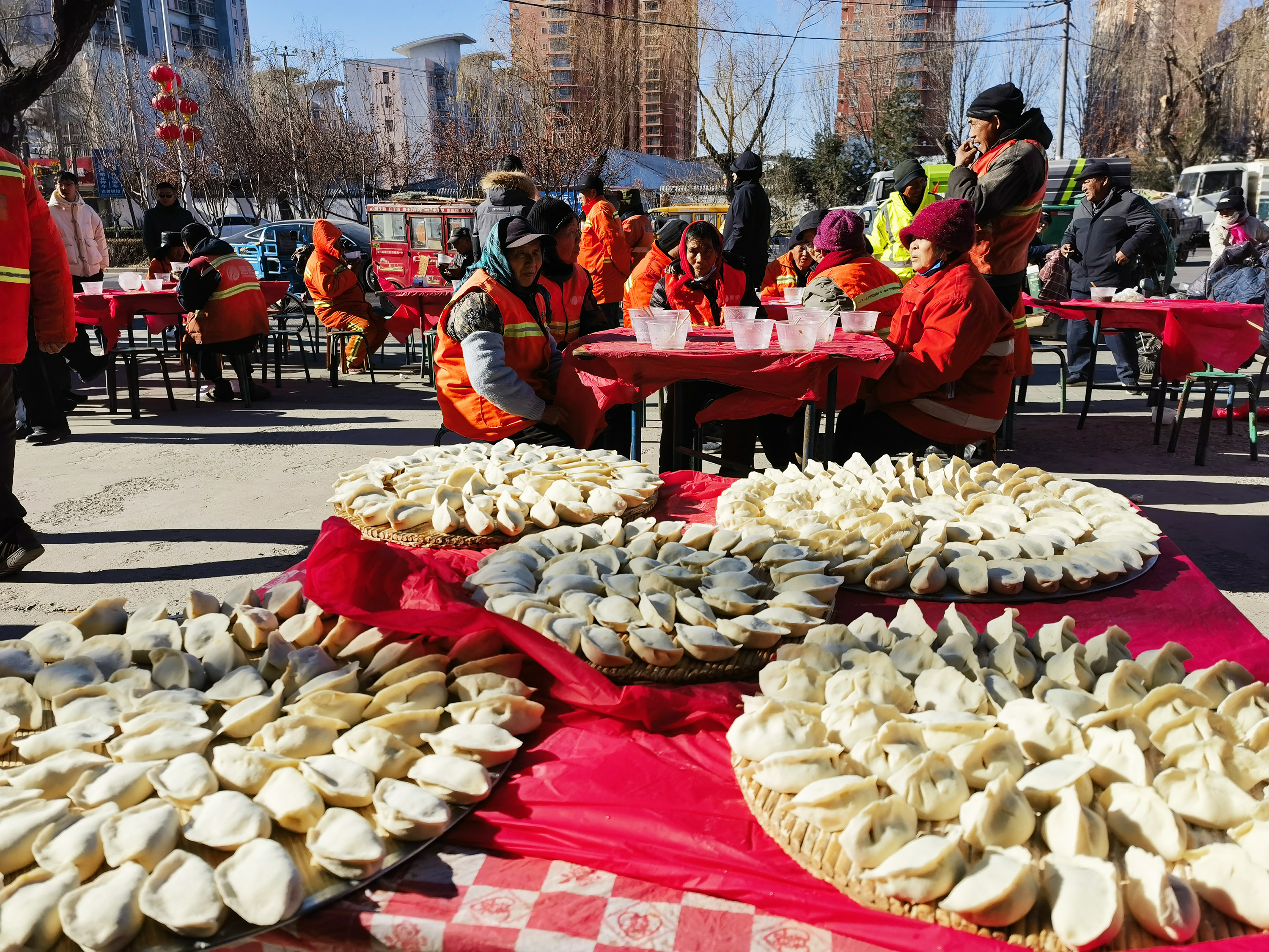 当天,活动现场一派繁忙景象,30余名志愿者分成几组,洗菜、剁馅、和面、擀皮、包饺子、煮饺子、熬粥,分工明确,有条不紊。临近中午,热气腾腾的饺子出锅,附近工作的环卫工人等户外工作者三三两两围坐在一起,聊家常、吃饺子、喝腊八粥,气氛温馨而融洽。志愿者还将饺子分发给过往的外卖员。餐后,高阳县夕阳红医疗康养中心的医护人员为现场的环卫工人们义诊。“感谢大家对我们的关爱。今天的饺子香、腊八粥甜,吃出了过年的味道,吃在嘴里,暖在心里。”环卫工人张先生笑着说。据了解,主办方还在该县昌润达公司和万方城设立用餐点,方便不同区域的户外工作者就近用餐。活动惠及户外工作者400余人。