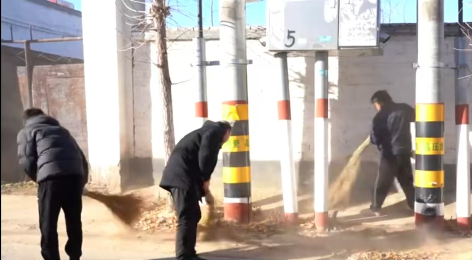 在西佛落镇西伯章村,村民们热情高涨,手持扫帚清扫道路垃圾,清理堆积落叶,齐心营造整洁宜人的村容村貌。