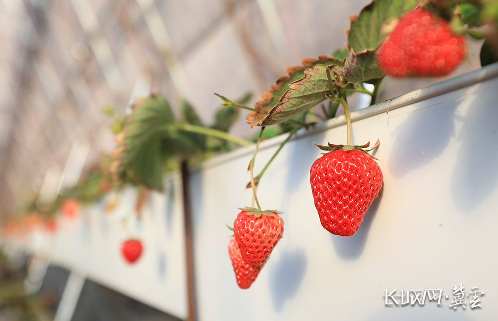草莓颗颗鲜红诱人,散发着浓郁的果香。长城网·冀云客户端记者 张文婧 摄