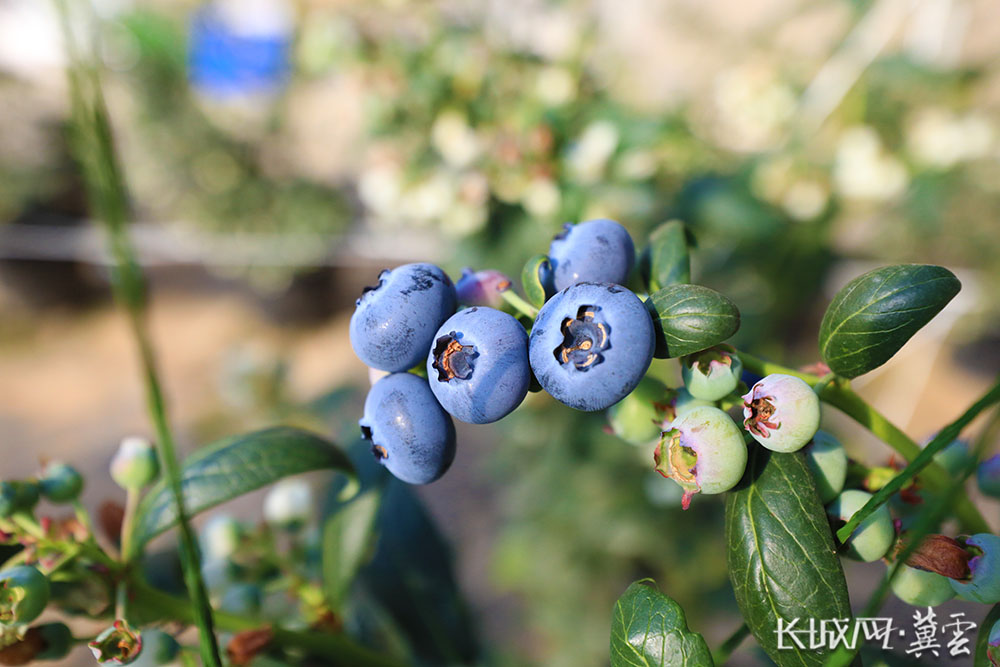 部分蓝莓果子逐渐成熟,蓝紫色泽鲜亮诱人。长城网·冀云客户端记者 张文婧 摄