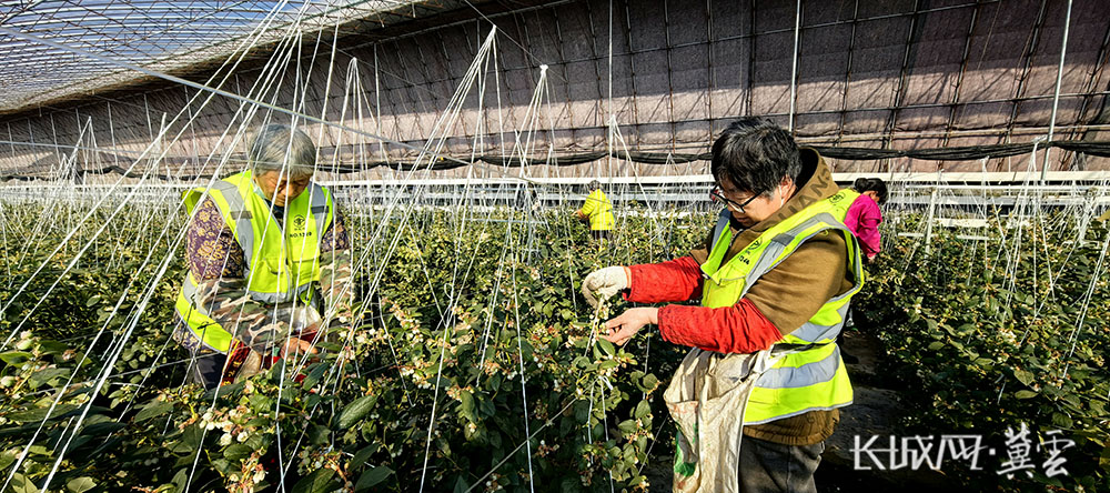 工人们正在整理蓝莓枝条。长城网·冀云客户端记者 张文婧 摄