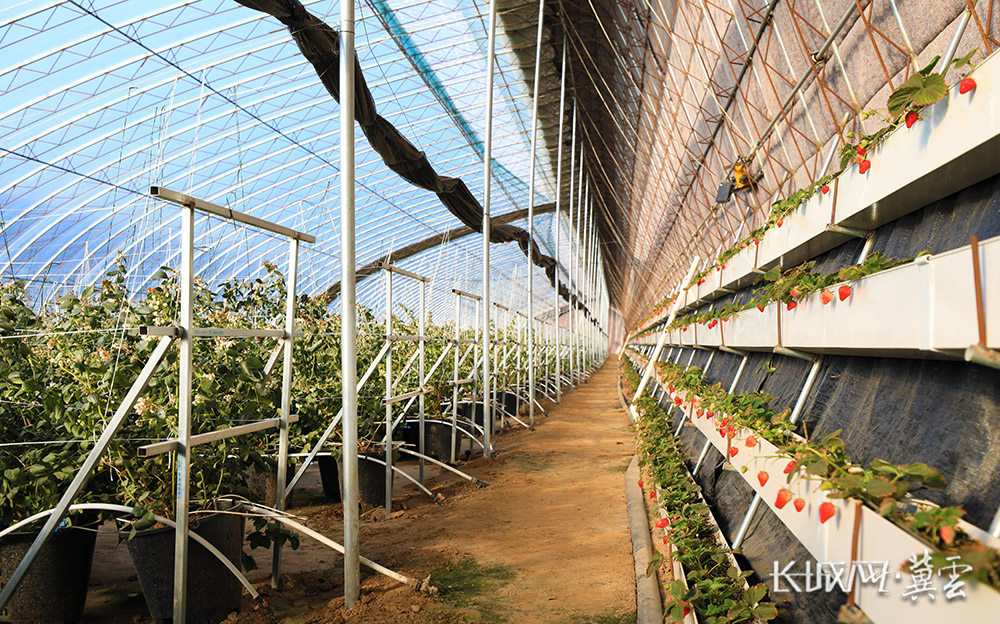 蓝莓与草莓在同一温室大棚内和谐共生。长城网·冀云客户端记者 张文婧 摄