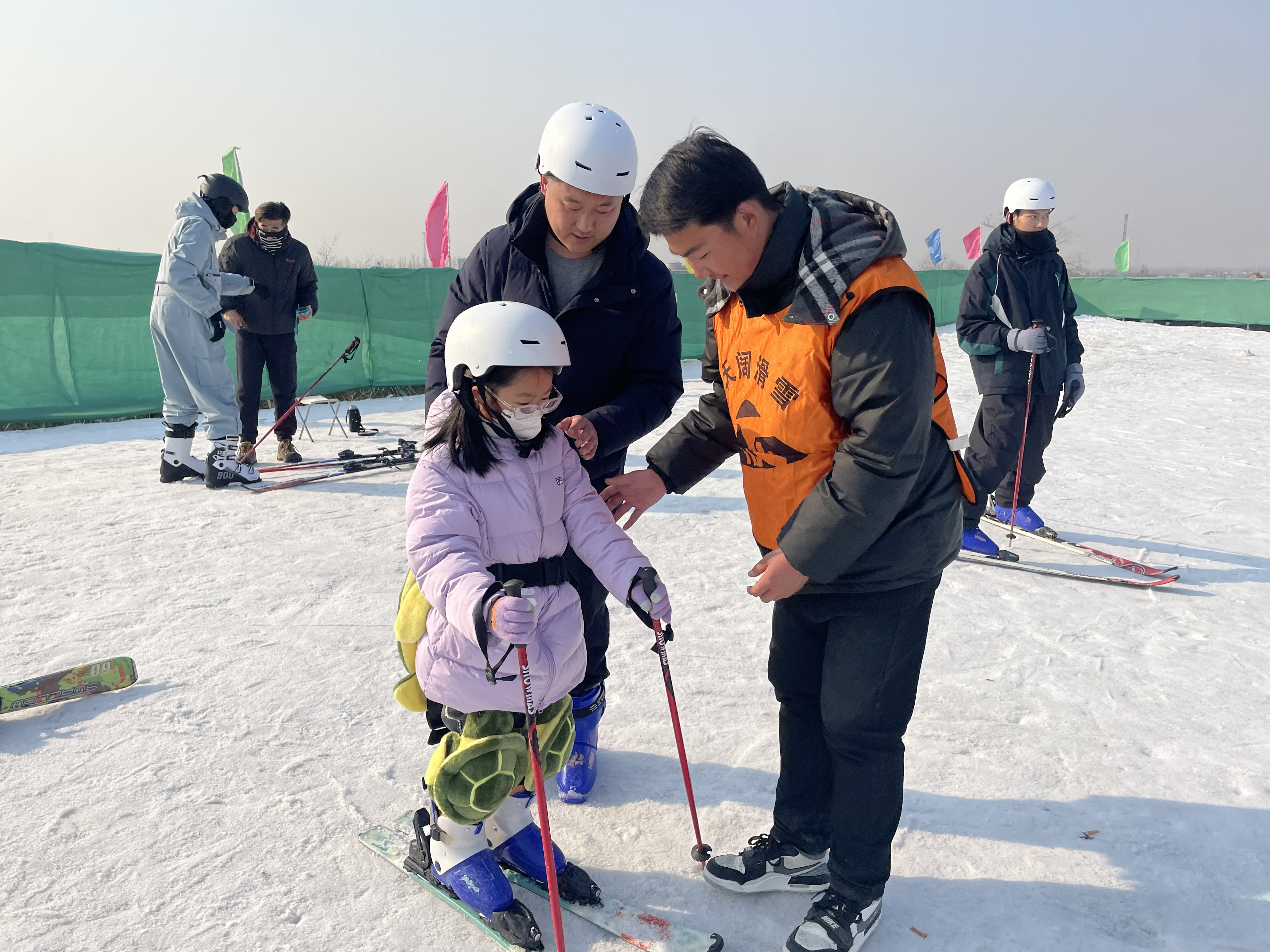 为营造安全滑雪环境,雪场配备多名专业滑雪教练员,对初学者进行免费滑雪教学。