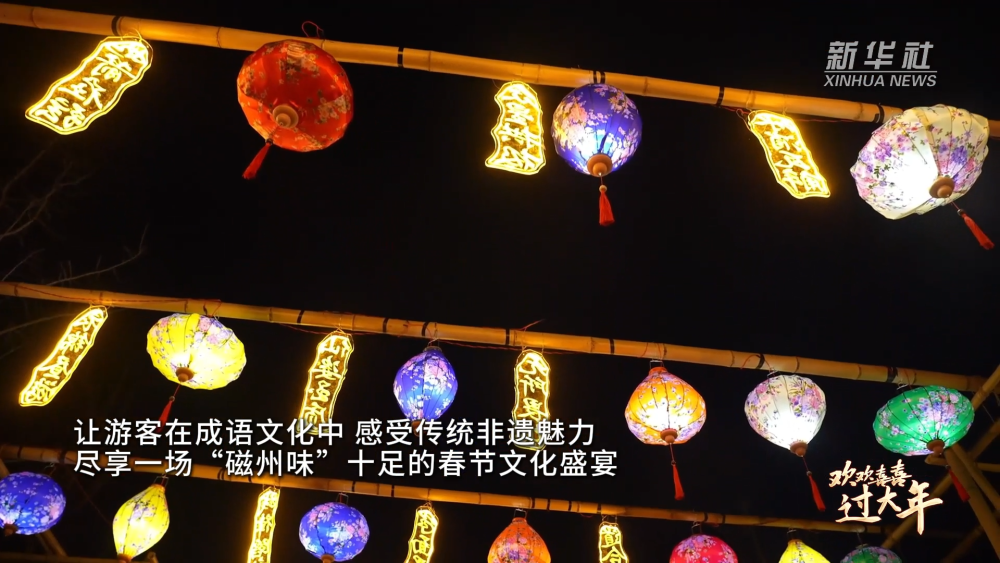 新春佳节,民俗焕彩贺迎新年。在河北省邯郸市磁县磁州水墨园里,成语文化遇上非遗春节,游客们七步成诗,兰陵入阵大显身手,观非遗打铁花,赏非遗怀调戏,看非遗磁州窑,品地道磁州宴。夜晚的磁州水墨园流光溢彩,打铁花、火壶等民俗展演轮番上演,让游客在成语文化中感受传统非遗魅力,尽享一场“磁州味”十足的春节文化盛宴。