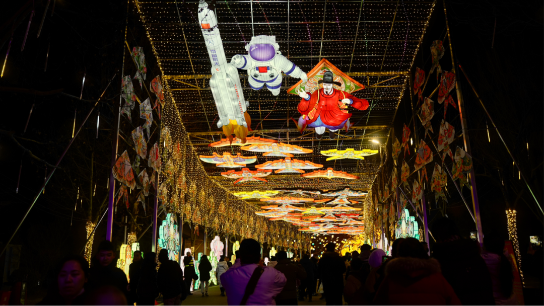 丹凤迎春、百年朝凤、福气年兽,栩栩如生的“年味”灯组,美得动人心魄;墨印传奇、好运司南、编织锦绣、榫卯机巧、天工开物,让古人的浪漫畅想与新时代的辉煌成就重逢;盘古开天、女娲造人、夸父逐日、大禹治水,引人穿越了时间的长河,回望华夏文明的源头处。
