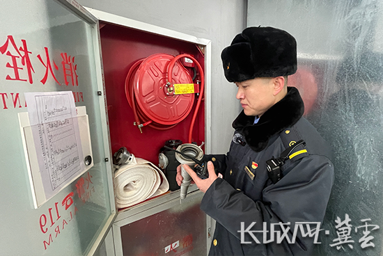 王辉正在对车站的消防器材进行检查。长城网·冀云客户端记者 王笛 摄