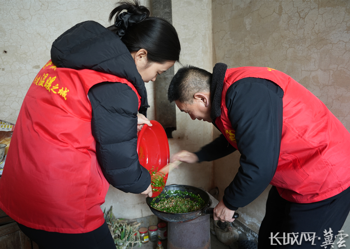 志愿者在任泽区邢家湾镇穆家口村孟庆格家,为老人调饺子馅。长城网·冀云客户端记者 刘俐验 摄