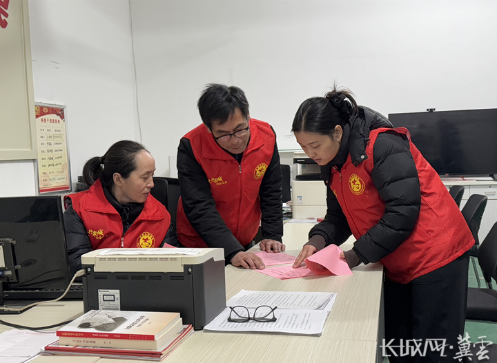 在邢家湾镇滏东村的党群服务中心,志愿者正在核实村里独居老人的信息。长城网·冀云客户端记者 刘俐验 摄