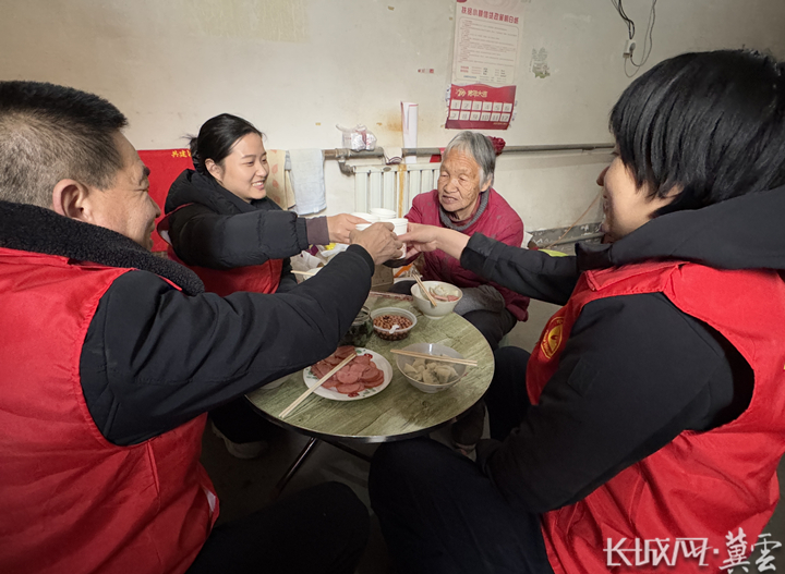 “过年呢,我们来陪您吃个饺子,咱们一起热闹热闹。”几句贴心的对话,瞬间拉近了与老人的距离。
