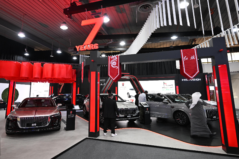 (资料图)2月3日,在科威特哈瓦利省,人们在汽车世界展上参观红旗汽车。新华社发(阿萨德摄)