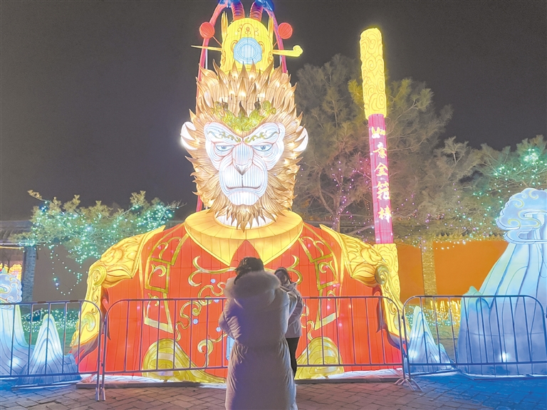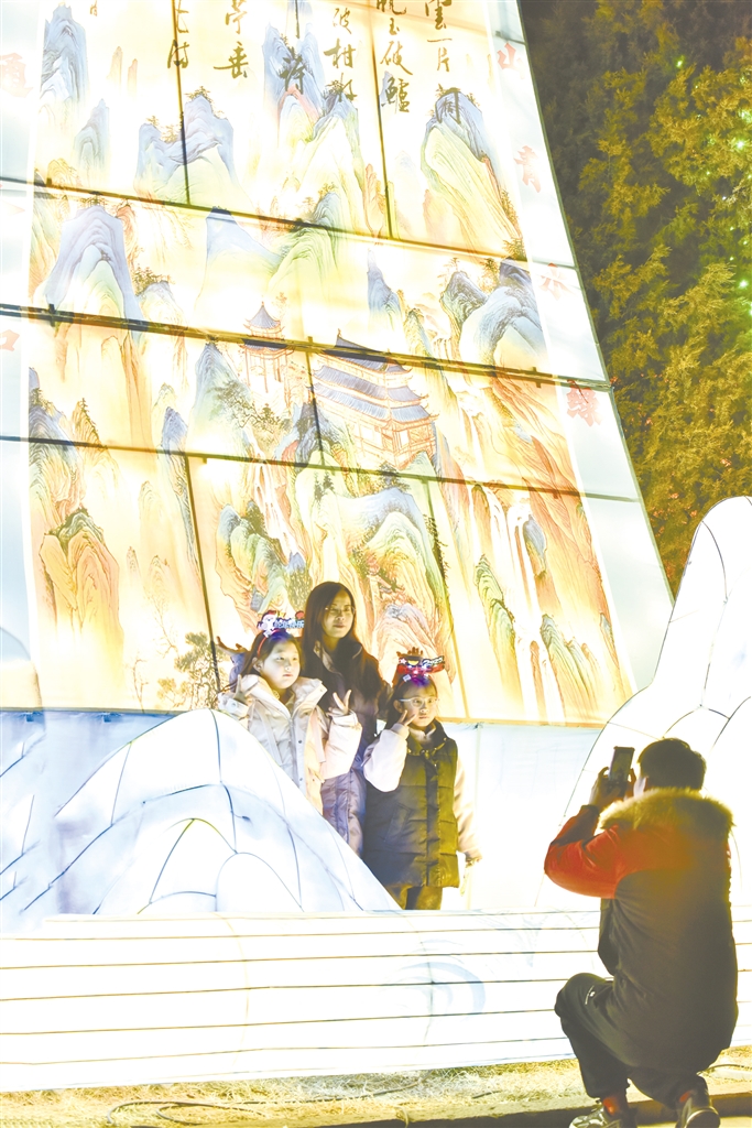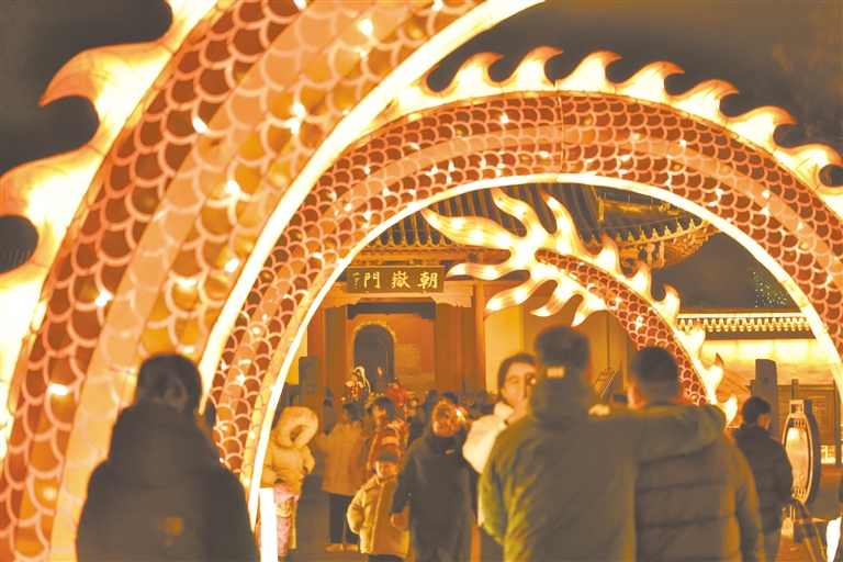 步入北岳庙景区灯会现场,流光溢彩,火树银花。“蛇舞新春”“龙形长廊”“大拜年”等春节文化元素构建起的6大主题灯组,沿景区中轴线两侧分布,造型精美、栩栩如生,营造出梦幻般的氛围。灯展将传统工艺与现代创意巧妙结合,不仅有象征着吉祥如意的新春元素,还融入曲阳县当地历史文化和民俗风情,古韵今风交织,让游客在欣赏花灯的同时,深入了解中国春节文化和曲阳县的深厚文化底蕴。