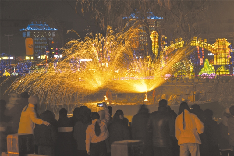 “爱国主题 科技文化”3D水幕激光电影更是别具一格,利用光影科技,展示各种主题的3D水幕激光电影,打造出震撼人心的视觉盛宴。晚上7点,打铁花等非遗展区表演将现场气氛推向高潮。逛累了,现场还设有美食集市,汇聚10余种特色小吃,满足游客的味蕾。