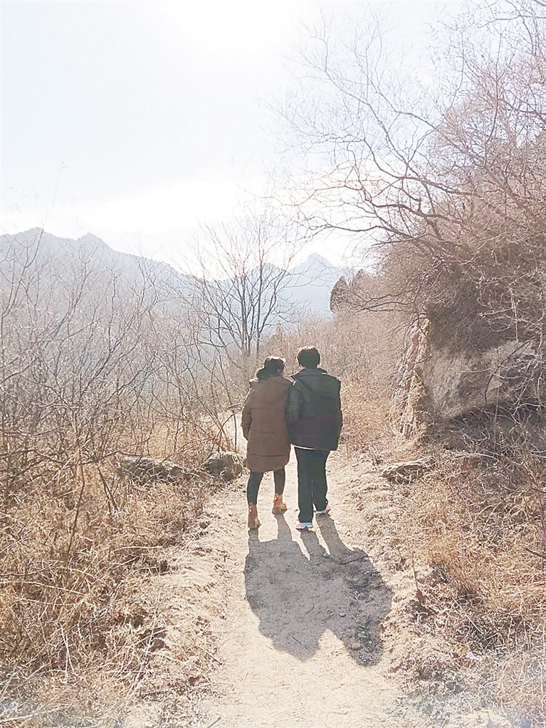 春节期间,我和妻子带着孩子们去爬山。妻子和女儿走在前面,女儿不由得将胳膊伸进妈妈的臂弯,紧紧搀扶着。扑面的阳光温暖和煦,她们身后的影子拉得很长、很长……