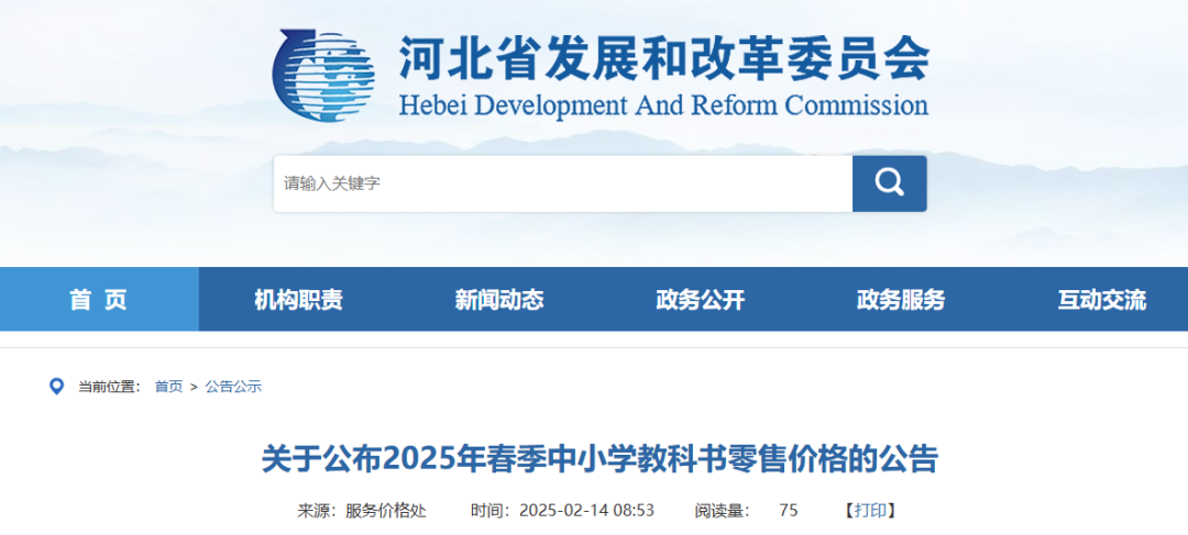 根据有关规定,河北省发展和改革委员会会同有关部门核定了2025年春季列入我省中小学教育用书目录的教科书零售价格,现予以公布。