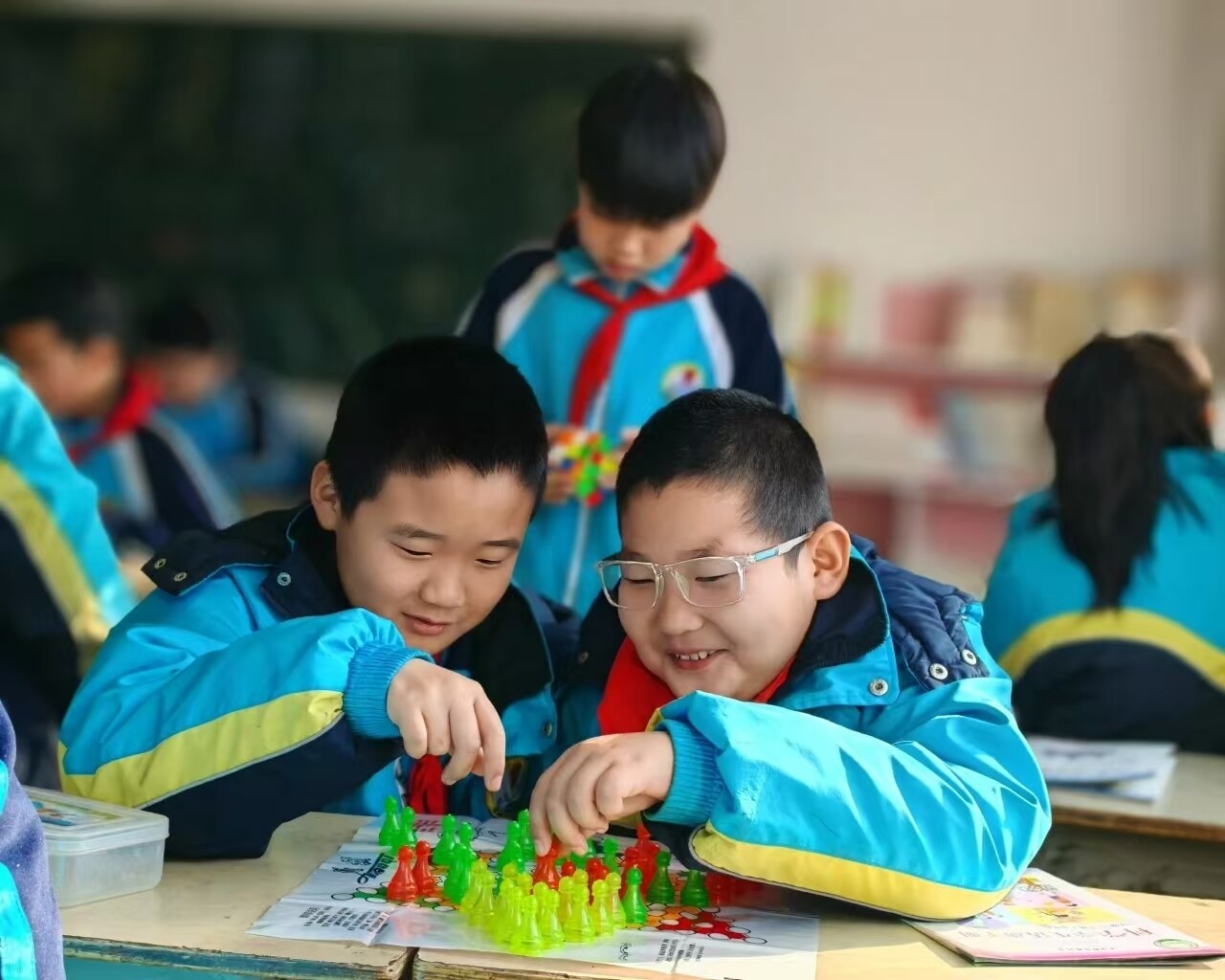 学生利用15分钟课间在教室里下棋。 栗志安 摄