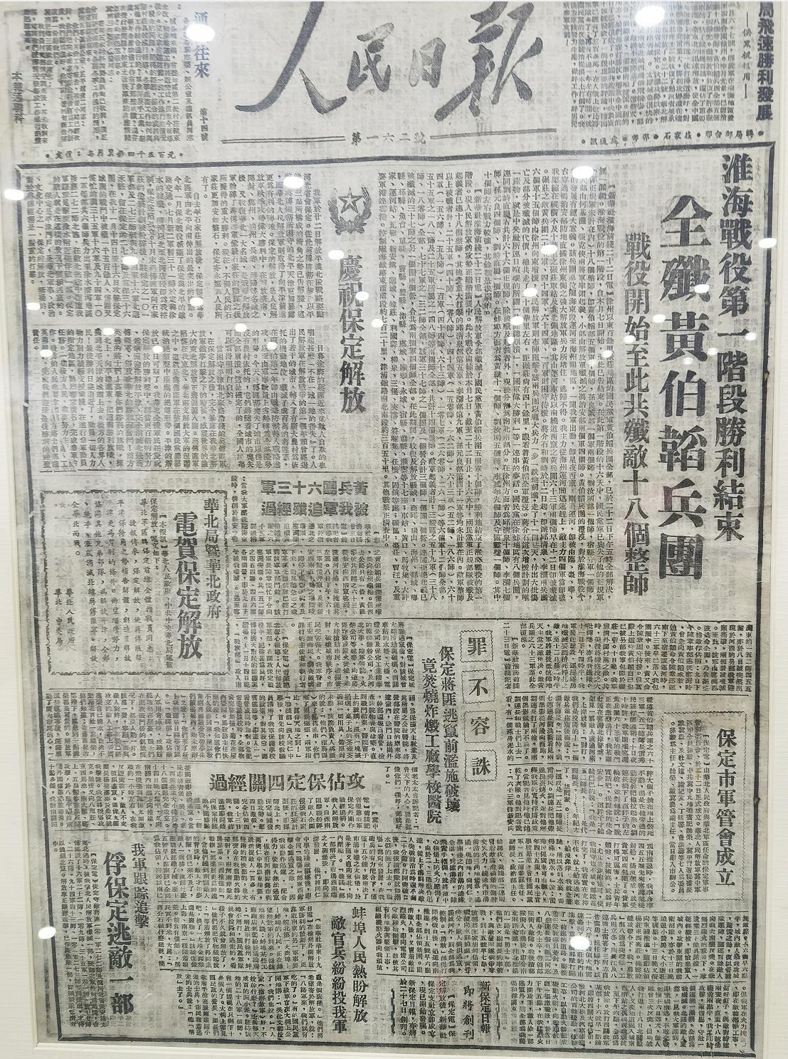 1948年11月25日的《人民日报》大篇幅报道保定解放。保定文献博物馆供图