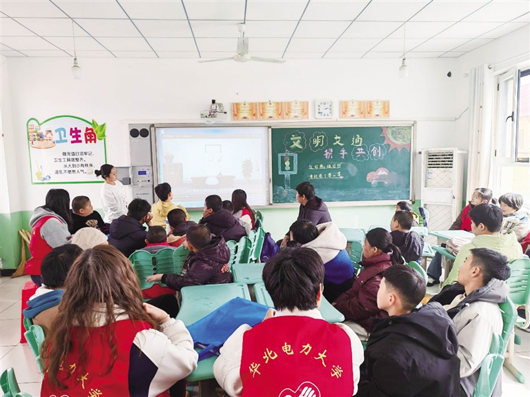 保定晚报讯(通讯员赵端)3月5日,华北电力大学“小橘灯”青年志愿团队17人到顺平县特殊教育学校开展学雷锋志愿服务活动,和孩子们一起制作手工,共同点亮爱的“小橘灯”。