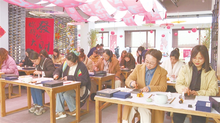 在互动交流环节,与会人员与易县电商负责人就非遗传承、产品创新、市场推广等议题进行探讨,碰撞出经济发展新思路。此外,与会人员还参观了易水非遗展厅,近距离观赏易县宫廷传统刺绣、易水砚雕刻、绞胎瓷等非遗精品,并亲自体验拓印技艺,感受传统文化的深厚底蕴。