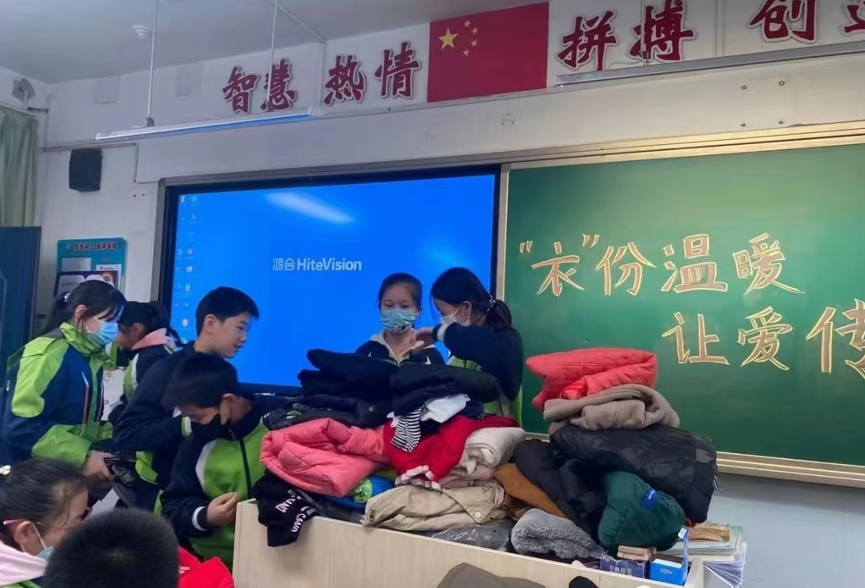 书画社组织的为四川甘孜藏族自治州新龙县雄龙西乡留守儿童捐献棉衣的活动,得到社员积极响应。保定市六一小学、县学街小学学生也纷纷捐献出自己穿小的衣服,还有学生把写满祝福的纸条和自己的画作叠好,悄悄放到捐赠的衣服口袋里,将关爱之情送到遥远的地方。