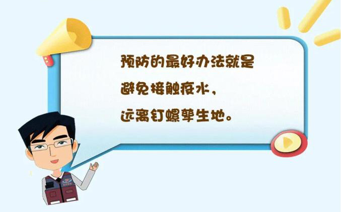 ▶时刻注意岸边是否有相关警示标语!尽量避免在有钉螺孳生或存在不确定风险的江、湖、塘、沟渠等水体游泳、戏水、洗衣、捕鱼;