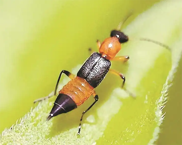 隐翅虫,体内含有强酸,沾到皮肤可能引发皮炎。