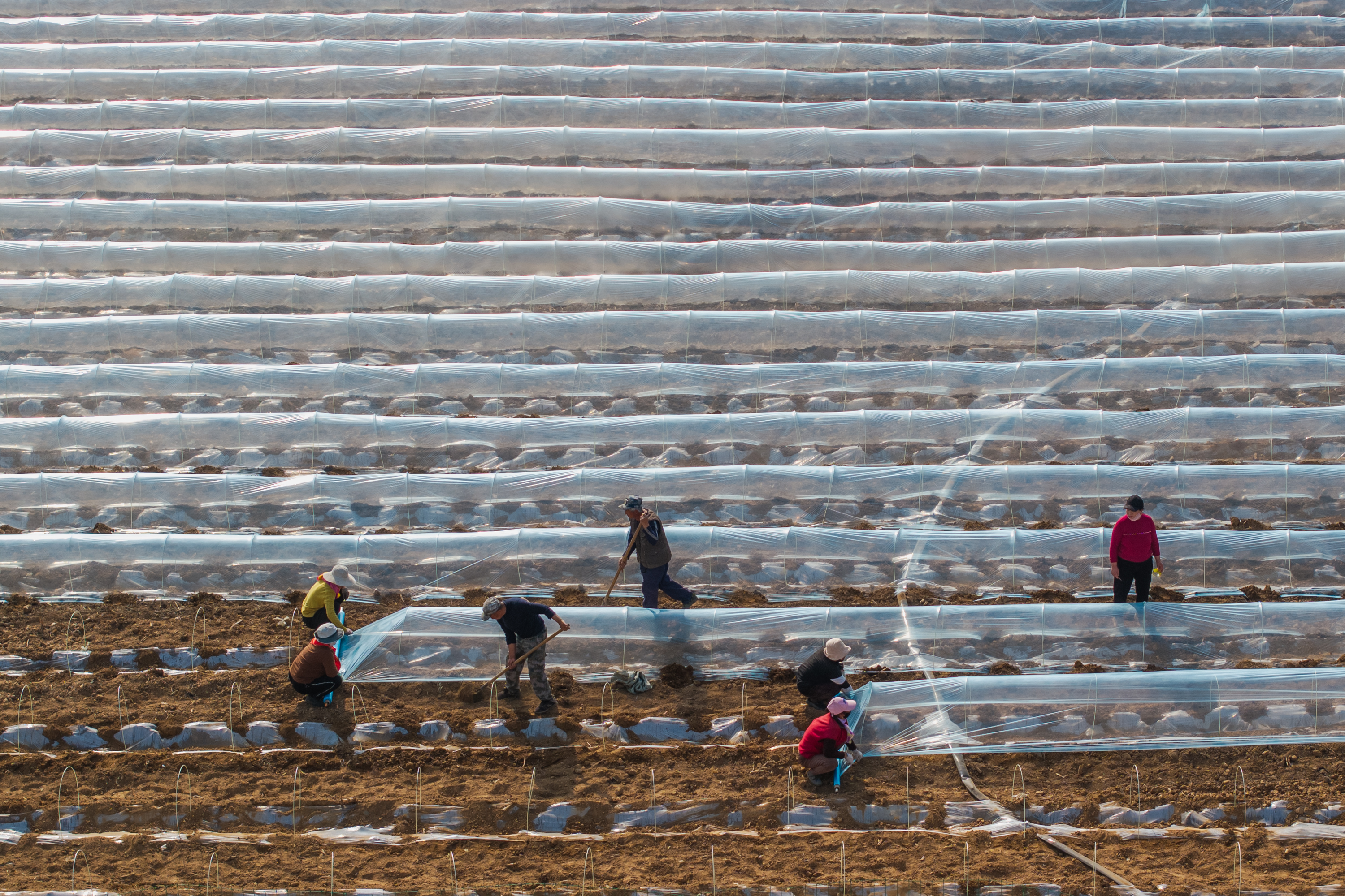 4月7日,狼牙山下北娄山村,农民们正在熟练地铺设地膜、栽种蔗苗。2024年以来,该村试点南果北种,共种植3个品种200多亩甘蔗,为村民增加新的收入来源。随着甘蔗种植成功,蔗田也成为新晋网红打卡地,吸引周边游客前来参观品尝,形成集采摘、观光、旅游于一体的种植新业态,推动休闲观光农业和乡村旅游融合发展。 王满权 摄