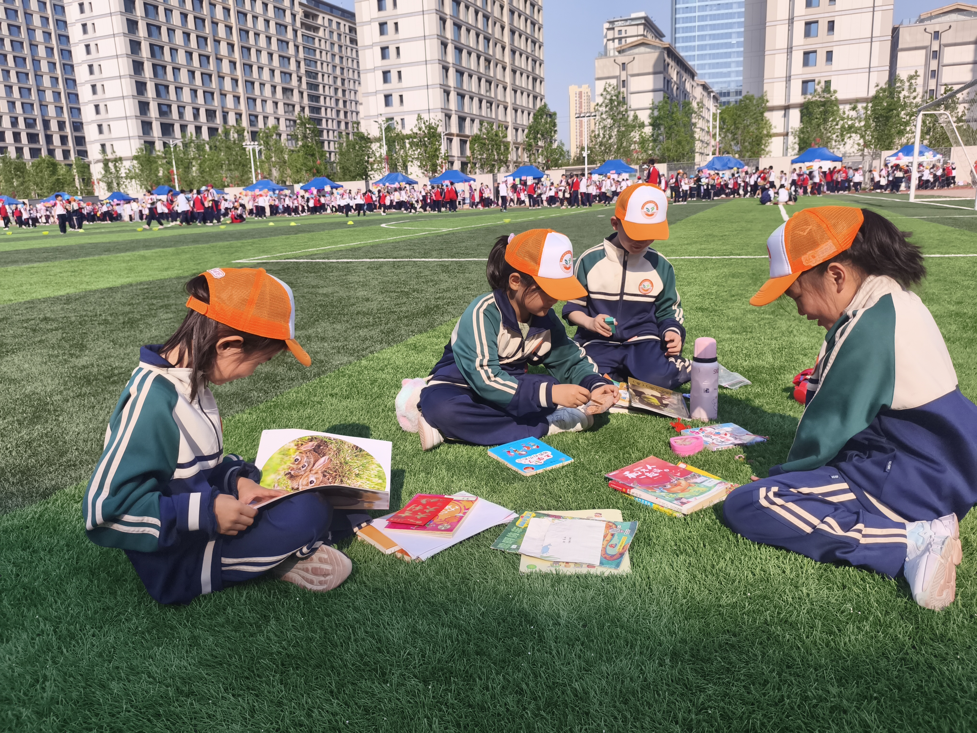 开幕式现场,老师为4月读书节各项活动获奖同学颁发奖状,课本剧《武松打虎》《西门豹治邺》等精彩表演赢得阵阵掌声。在义卖环节,操场变成了热闹的书市,各班撑起遮阳伞摆起书摊,同学们化身“书店老板”,热情地向伙伴推荐自己心爱的图书。