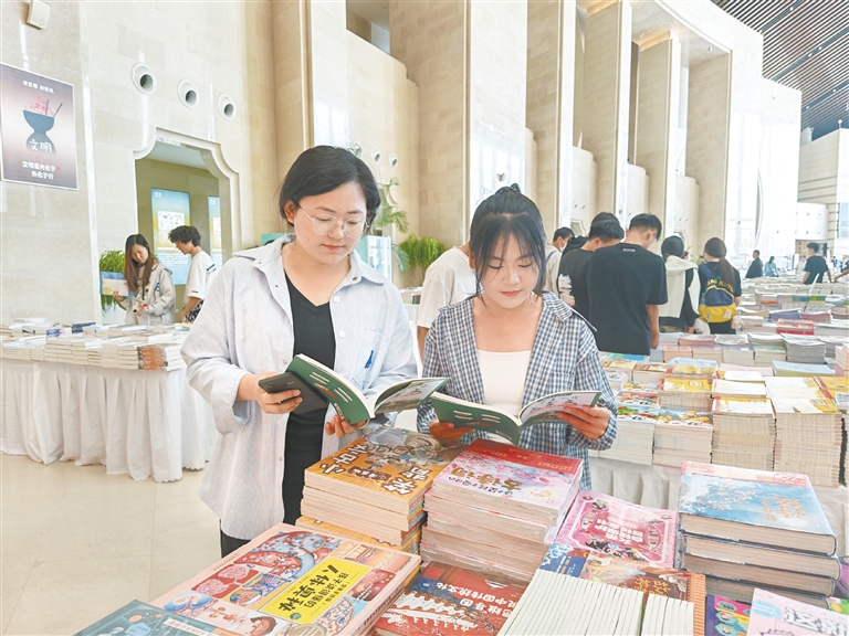 活动现场,师生们结伴参观浏览党政读物主题区、京津冀精品图书联展区、新书畅销书专区、惠民展销区等特色图书板块,一本本承载着思想与智慧的书籍如同一扇扇窗,为学生的心灵提供滋养,使精神焕发活力。农林与生物工程系学生刘圣晨穿梭于书架间,专注寻找园艺技术专业相关书籍:“这些前沿专业著作能帮我拓宽视野,理论结合实践才能更好掌握专业技能。”