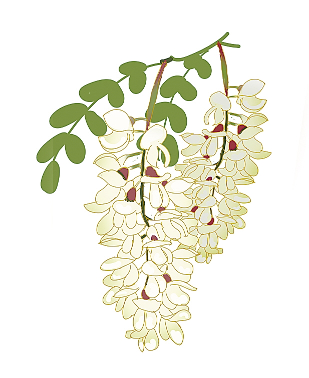 每天下午放学,我都会迫不及待地喊上姐姐,带上草笼(一种用藤条编的打草用的篮子)去刺槐树上摘槐花。我们找到一棵槐花开得最多的树,我三两下就蹿上了树干,等靠稳了身体,我也顾不得树上的刺,先赶紧捋一把槐花塞进嘴里。那个香甜啊,简直让我陶醉了。胡乱往嘴里塞了几把后,我就小心翼翼地摘下一串串槐花扔到树下。姐姐再小心地一串串捡起来放到草笼里,放几串,吃一串,放几串,再吃一串……不一会儿,我们俩肚子都填满了,草笼里也盛满了。
