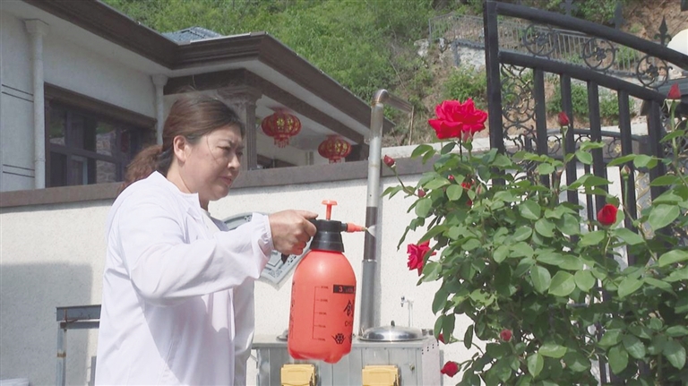 村民赵艳春正在给自家月季浇水:“现在我们村每家每户都经常打扫卫生,村内的道路也干干净净。在院子里种点时令蔬菜,养上一些喜欢的花草,既美化环境,也愉悦心情。”