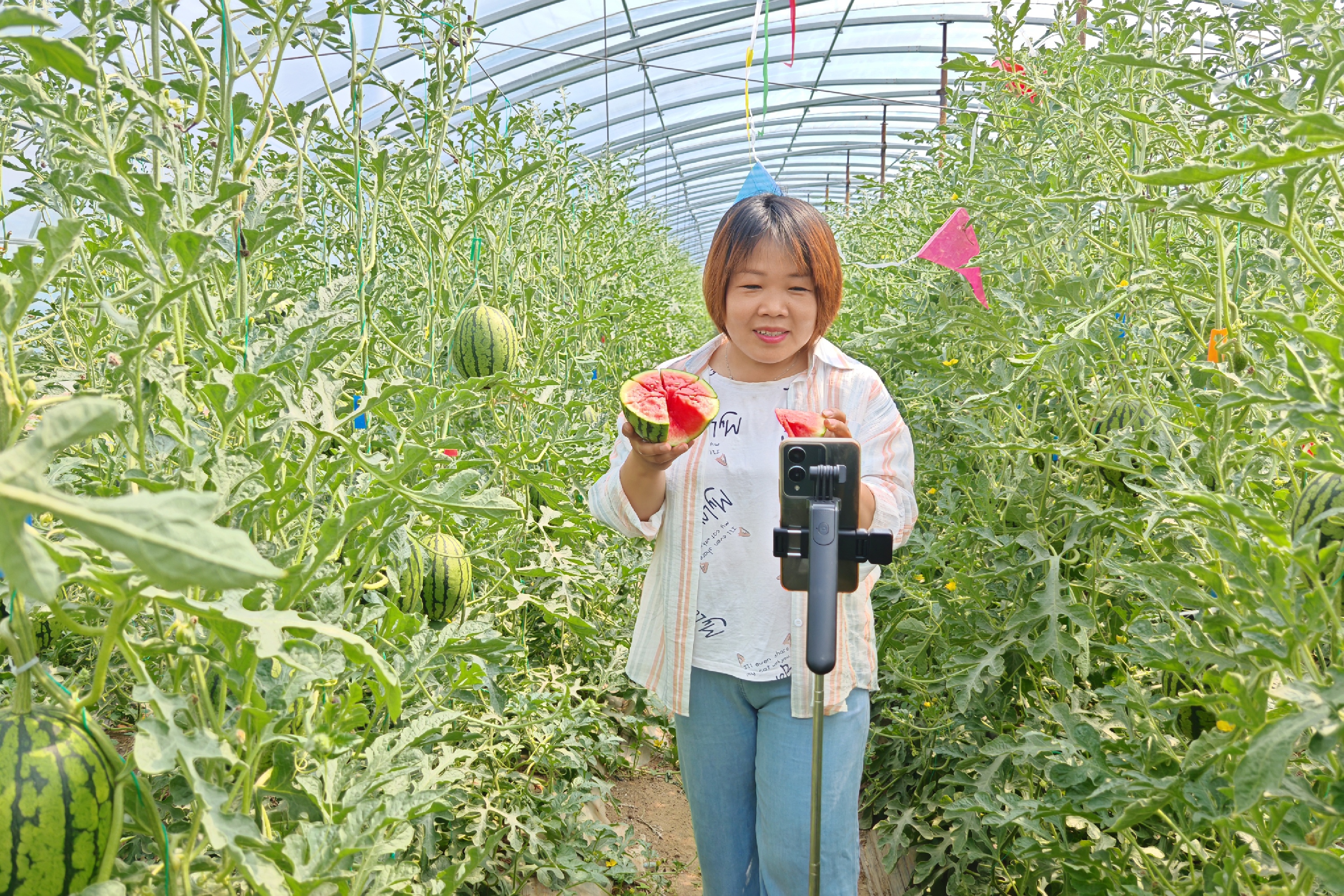 “看看咱们的瓜,皮薄,汁水充足,甜度高。”5月15日,该县天宫寺镇太平庄村的吊瓜棚里,魏义芹在帮助农户直播卖瓜。2022年,村里有30万斤西瓜滞销,魏义芹开启了第一场直播,30万斤西瓜3天就被销售一空。3年来,她累计帮助1200户农户,售出农产品近百种,经济价值达500余万元。