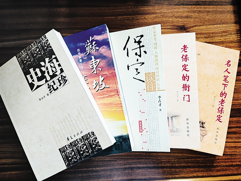 截至目前,李占才独立出版《保定谈往》《苏东坡在定州》等6部专著,或追溯古城变迁,或聚焦名人足迹,字里行间流淌着对故土的深情。他参与策划编辑的14部书籍中,《保定读本》浓墨重彩地向世人展示保定的往昔与今世,《老保定丛书》则全景式呈现旧时保定的市井百态。在学术研究领域,他承担的《鲜虞中山国文化在保定历史文化中的地位研究》等两项社科课题,填补了地方文化研究空白。