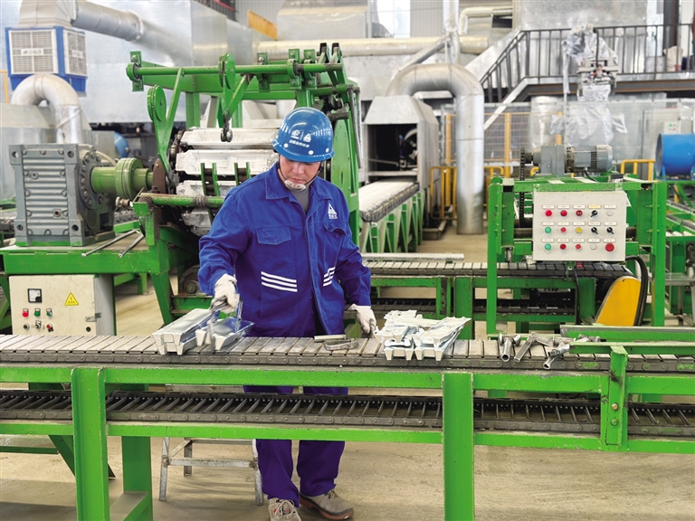 14台熔炼炉同时吞吐着炽热锌水,机械臂精准抓取锌合金锭块,在空中划出银色弧线,40吨超高耐蚀合金板材如银河倾泻……5月27日,在清苑经济开发区奥琦圣新型金属材料制造有限公司的智能车间里,被称作“钢铁铠甲”的锌铝镁合金走下全自动浇铸线,它们将奔赴养殖场、光伏基地、家电工厂,送上一件件“保护衣”。