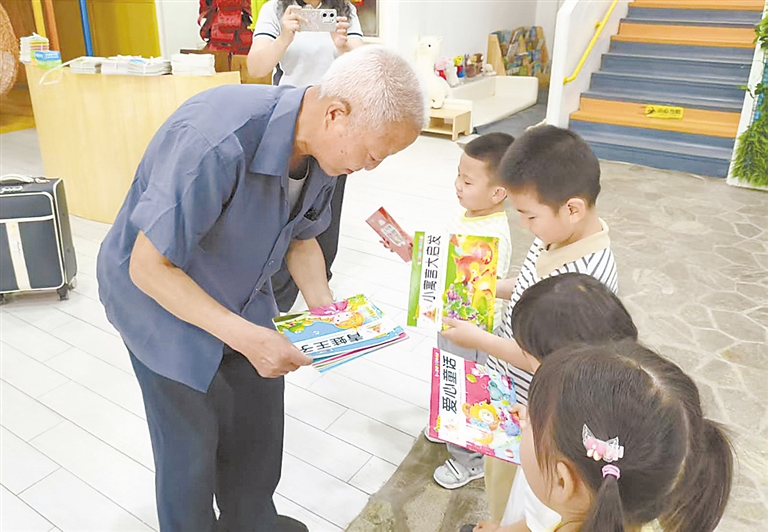 保定晚报讯(记者霍若雯 通讯员朱晓茜)5月27日,竞秀区胜利社区辖区内的金色摇篮爱诺幼儿园和乐凯幼儿园迎来一位熟悉的老朋友——社区老党员、退役军人王树祥带着他精心挑选的300余册儿童图书,为孩子们送上一份精神厚礼。