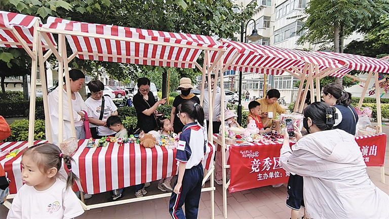 看到孩子们在活动中兴致盎然的笑脸,家长们也笑容满面,赞叹不已。他们纷纷表示,这场活动不仅让孩子们尽情释放天性、玩得开心,还锻炼了他们的胆量和社交能力。居民陈雪一边为孩子拍照留念,一边感慨道:“平时工作忙得脚不沾地,很少有时间带孩子出去玩,总觉得亏欠他太多。今天看到孩子在跳蚤市场里当‘小掌柜’吆喝,和小伙伴们一起做炒酸奶、玩套圈游戏,笑得那么灿烂,我心里特别感动。感谢社区举办这么有意义的活动,既弥补了我陪伴的缺失,也给孩子留下珍贵的童年回忆。”