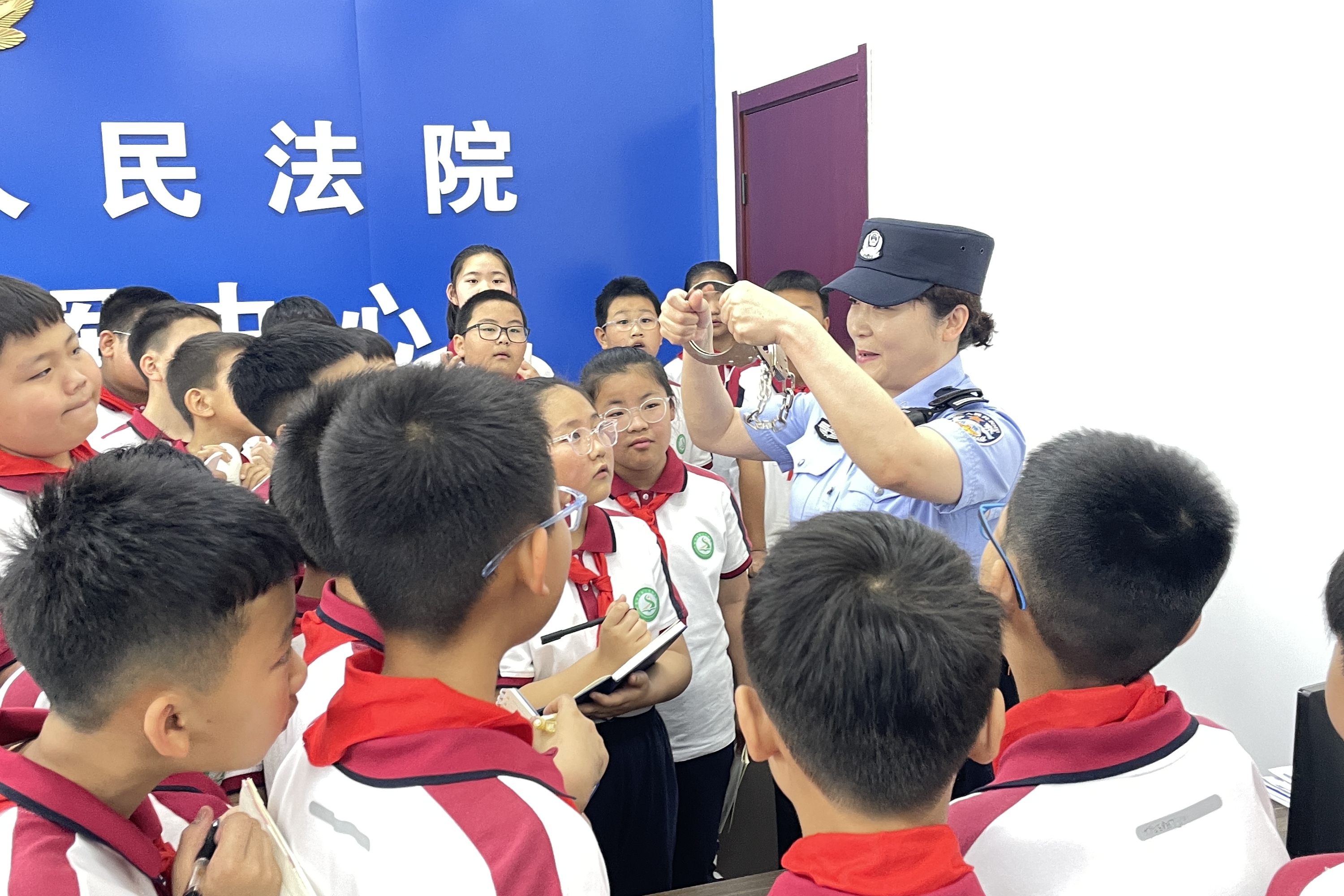 模拟法庭结束后,同学们参观法院羁押室、警用器械及执行指挥中心、院史馆等,从历史沿革和重大事件中感受法治的传承和力量。通过法院走廊两侧精心设计的法治文化展板,同学们了解古代典型案例,在移步换景间获取法律常识。“通过这次活动,我知道了法律是维护社会公平正义的重要武器,以后我一定要做一个遵纪守法的好公民。”“这种沉浸式法治课堂,让我学到了很多法律小知识,也激发了对法律的兴趣。今后,我将学好法、用好法,不断提升自己的法律素养。”学生们纷纷表示。