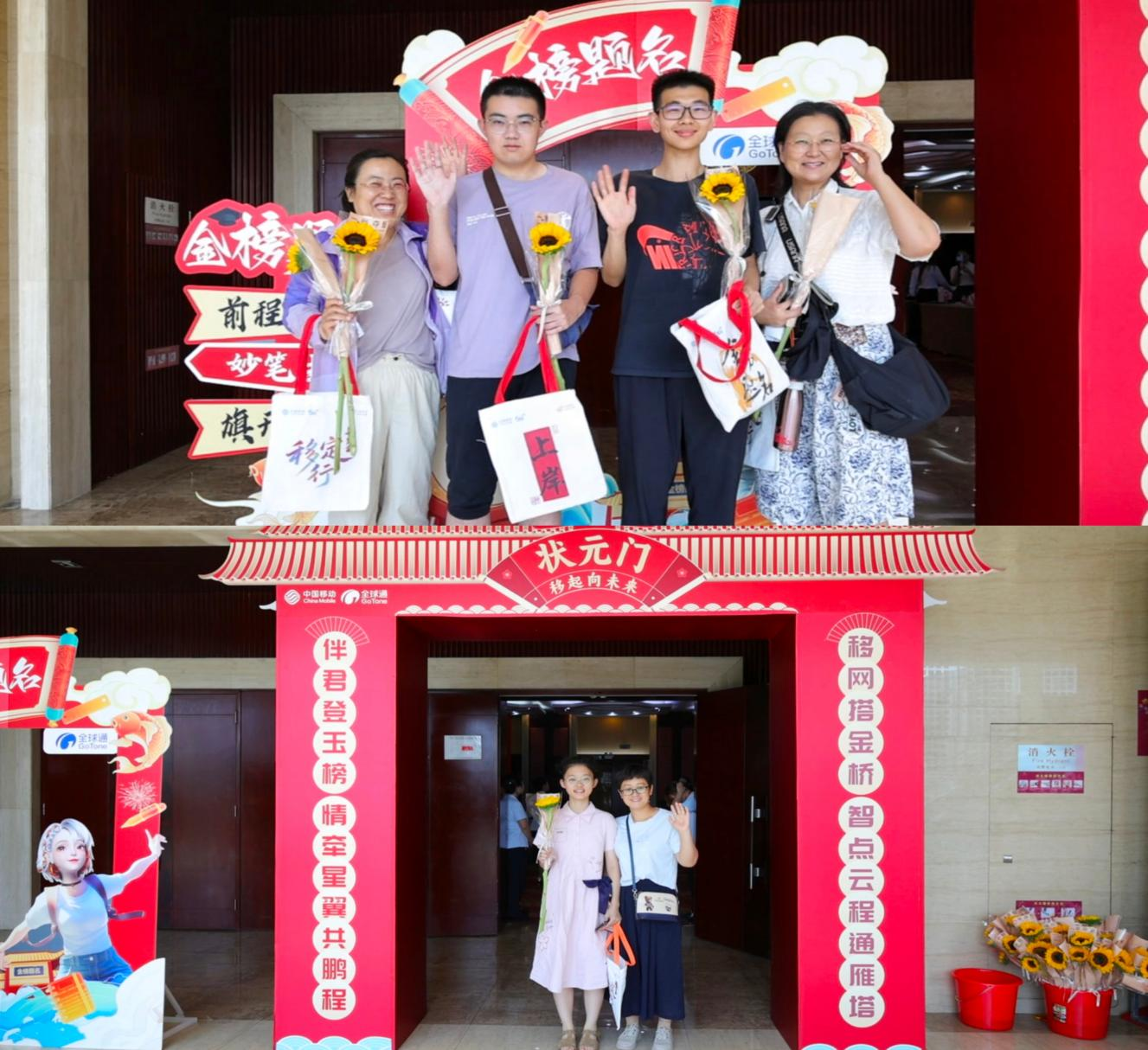 活动现场,保定移动精心打造了充满仪式感的状元及金榜题名打卡处,成为家长和考生们争相合影留念的热门区域。绚丽多彩的背景板搭配金色装饰,营造出浓厚的金榜题名氛围,定格下一个个对未来充满期待的瞬间。同时,保定移动还贴心地为考生们准备了加油包帆布袋,帆布袋上印着“金榜题名”、“得偿所愿”、“上岸”、“前程似锦”等美好祝愿,不仅实用,更寄托了深切的祝福。此外,好运扇和印有高考正能量话语的定制水也送到考生手中。轻轻摇动好运扇,丝丝清凉驱散夏日的燥热,拿起正能量水,充满鼓励的话语为考生注入满满的信心与动力。这些精心准备的小礼物,将保定移动的祝福传递到每一位考生心间,陪伴他们迈向人生新征程。