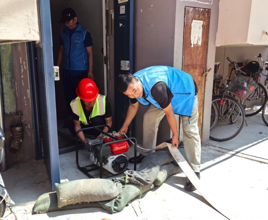 演练模拟强降雨天气下地下室进水险情,社区与公园工作人员迅速启动防汛应急预案。大家分工协作,携带沙袋、抽水泵等防汛物资赶赴现场,利用沙袋封堵地下入口,防止雨水倒灌,并铺设排水软管,调试抽水泵,争分夺秒搭建排水通道。同时,检查电路设备,引导楼内居民有序撤离至安全区域。整个演练过程反应迅速、配合默契,有效检验了应急防汛预案的科学性与可行性。