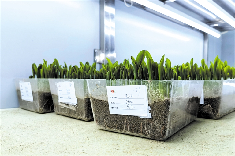 智能气候培养实验室里,一排排样盒种满玉米苗。