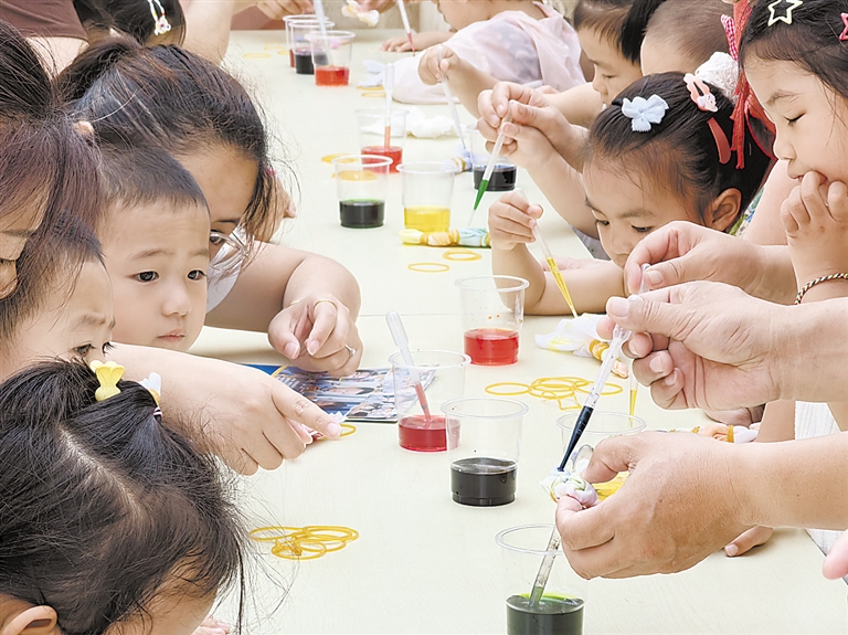 保定晚报讯(通讯员郭俊艳)6月22日,新市场街道假日丽城社区开展“遇见扎染,妙‘布’可言”手工扎染活动,带领孩子们探寻传统扎染技艺魅力,亲身体验制作过程的乐趣。