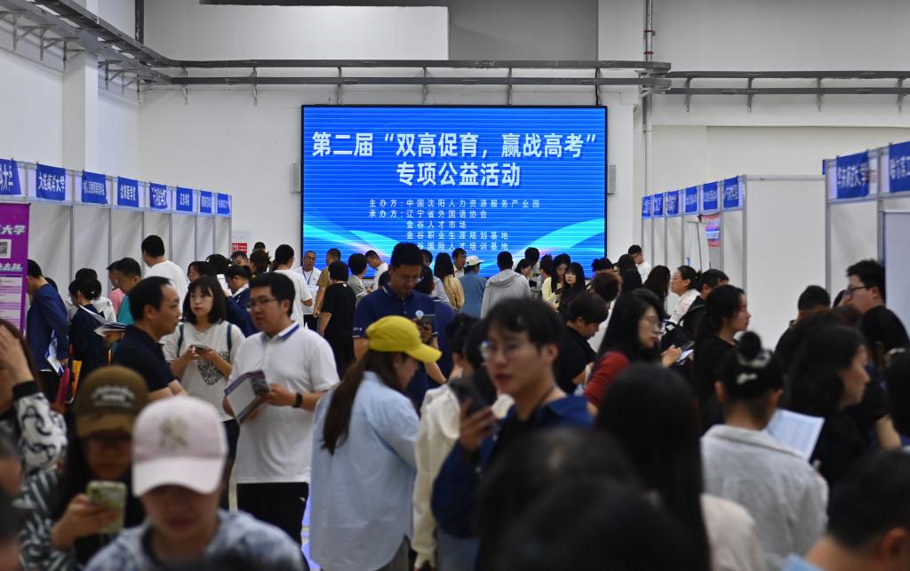 6月10日,第二届“双高促育,赢战高考”专项公益活动现场,辽宁省内外近八十所高校招生部门为考生提供志愿填报指导。 新华社记者 吴青昊 摄