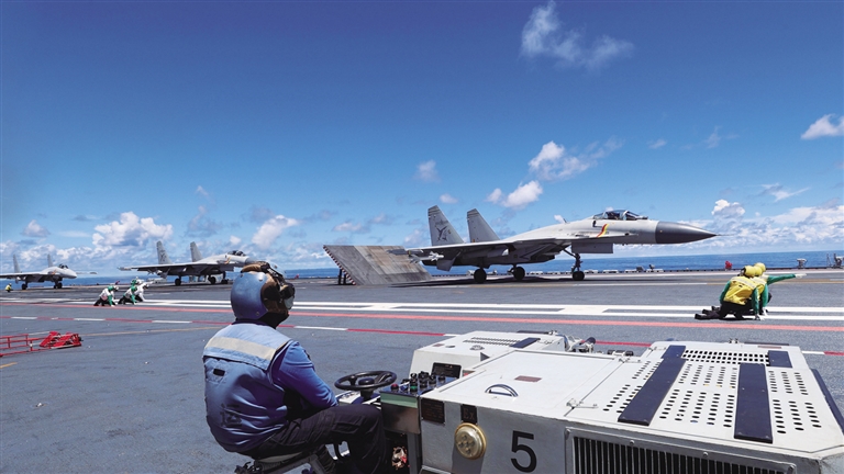 训练期间,外军舰机多次抵近侦察、跟踪监视,编队全程保持高度戒备、随时反应的作战状态,多次组织舰载机战斗起飞,专业稳妥处置应对。